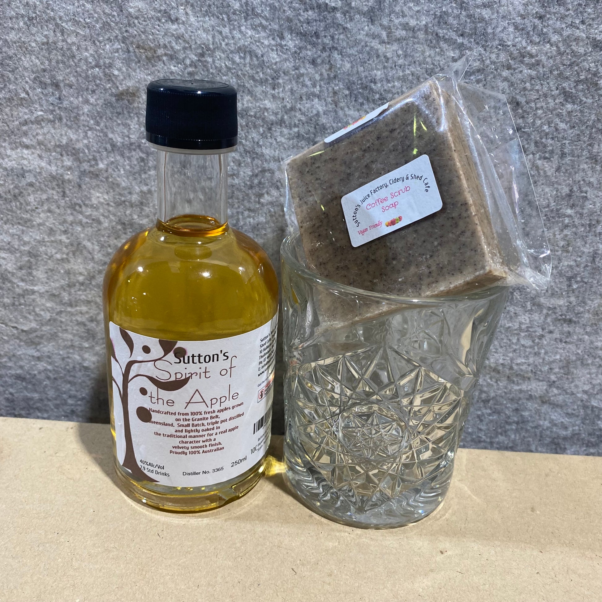 The perfect gift for Liqueur connoisseurs and self-care enthusiasts alike! Enjoy the smooth and velvety, rich flavour of our Spirit of the Apple, served in a brandy glass on ice or neat while pampering yourself with our indulgent coffee scrub soap. Elevate your relaxation game with this luxurious gift pack.