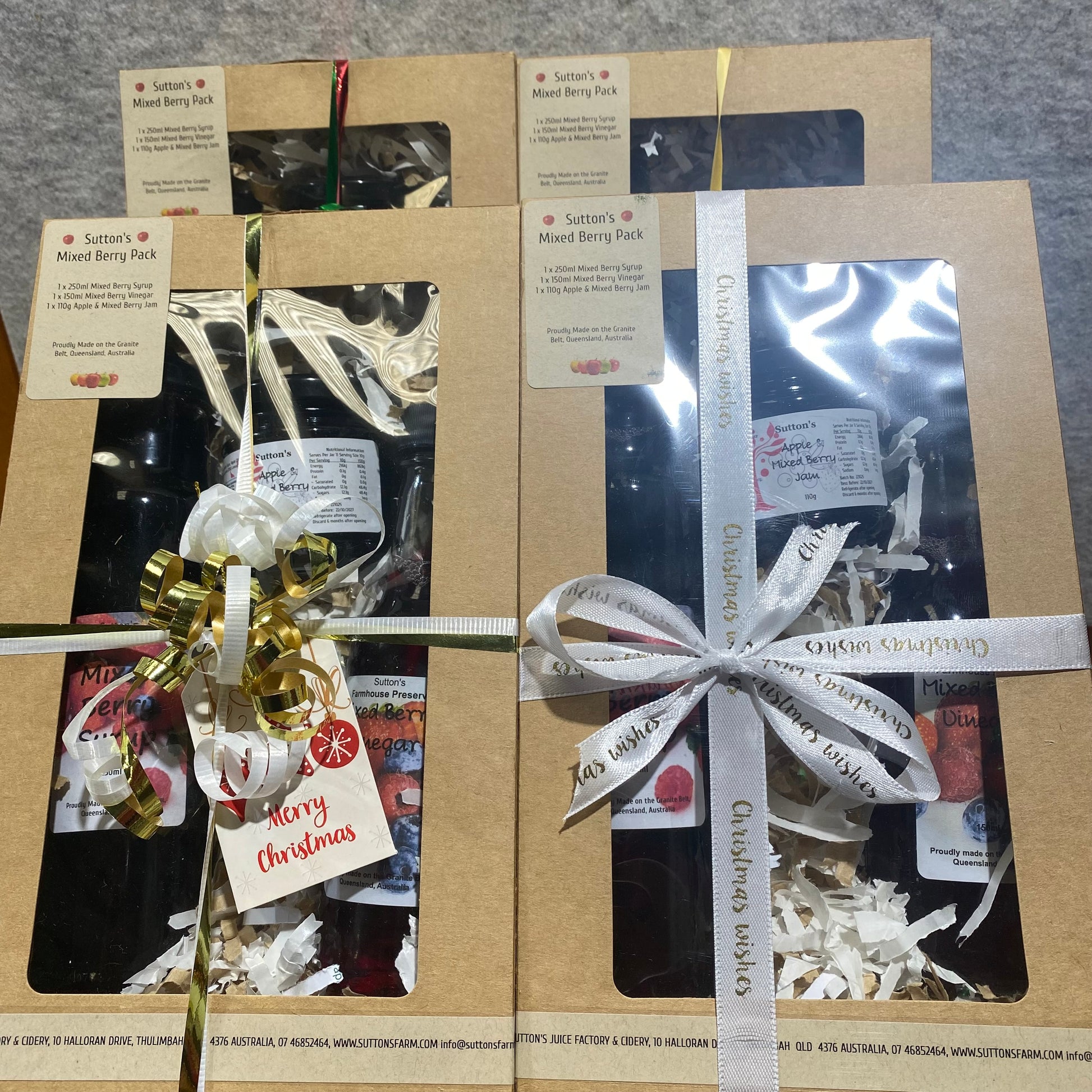 Pack contains: 1 x 250ml Mixed Berry Syrup, 1 x 110g Mixed Berry Jam, 1 x 150ml Mixed Berry Vinegar